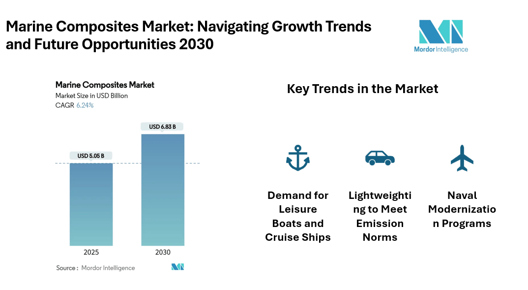 Home Press ReleasesMarine Composites Market to Reach USD 6.83 Billion by 2030, Driven by Lightweighting, Naval Modernization, and Recreational Boating Demand